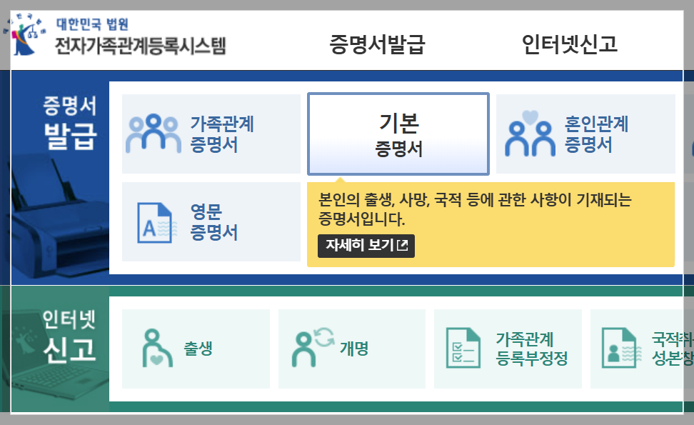 - 접속 사이트: 대법원 전자가족관계등록시스템