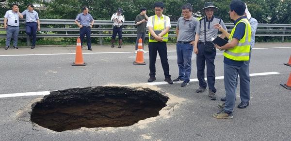 - 공동(空洞)이 생긴 상태로 복구되지 않은 도로 지반