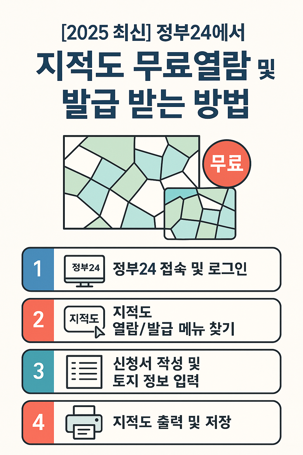 2025년 현재, 정부24(www.gov.kr) 웹사이트에서는 회원가입 후 무료로 지적도를 열람하거나 온라인 발급 받을 수 있습니다.